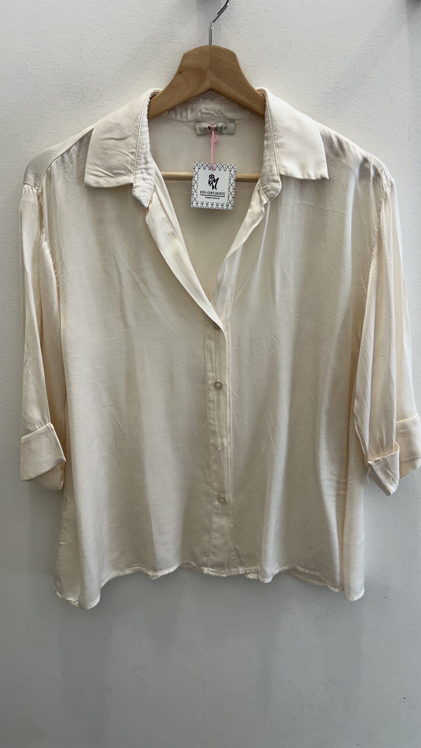 Camisa de manga al codo en tejido efecto raso con cuello de camisa y cierre frontal con botones. Puño con vuelta. talla única (desde la 36 hasta la 42). Disponible también en Visón y Rosa Antiguo