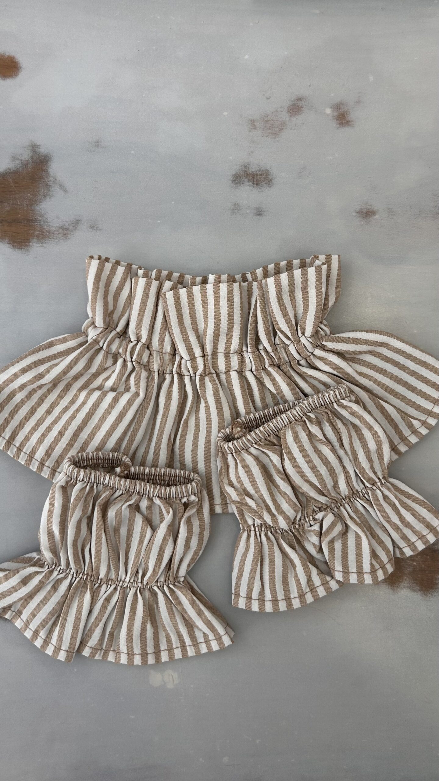 Conjunto de cuello y puños en rayas. Goma elástica ajustable.Talla única. Disponible también en Rosa Azul y Verde