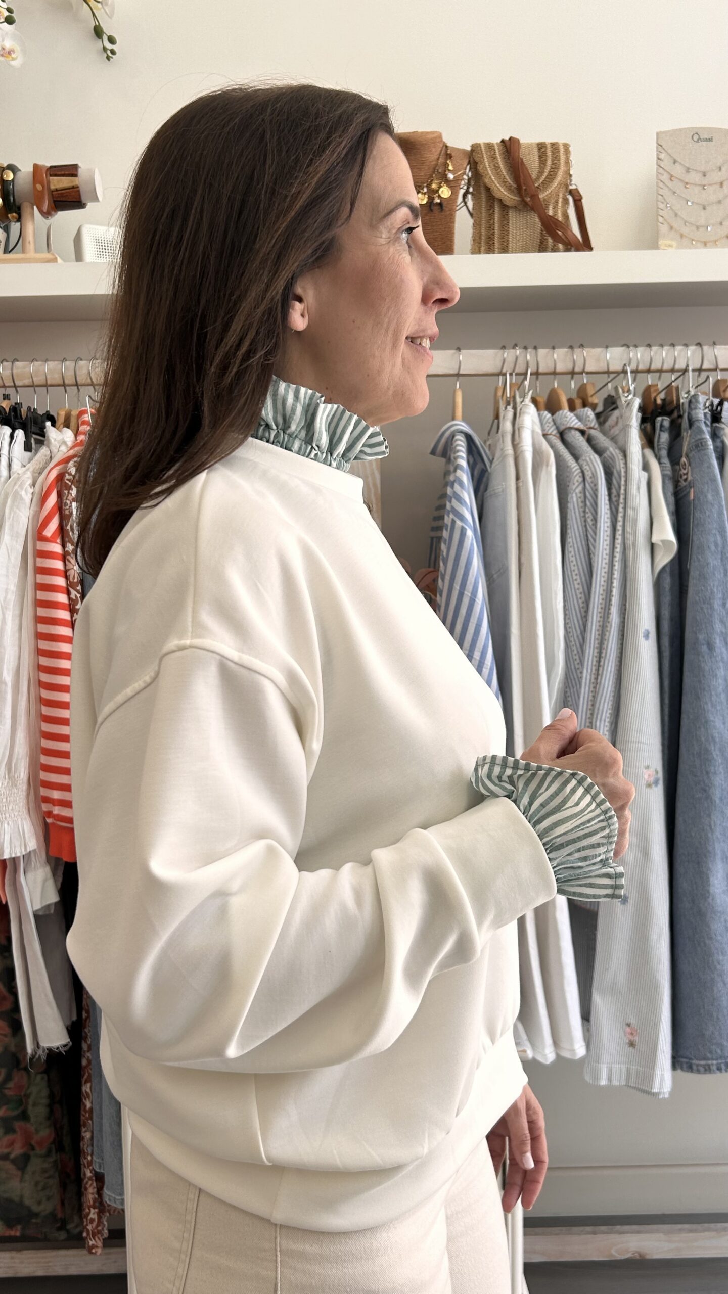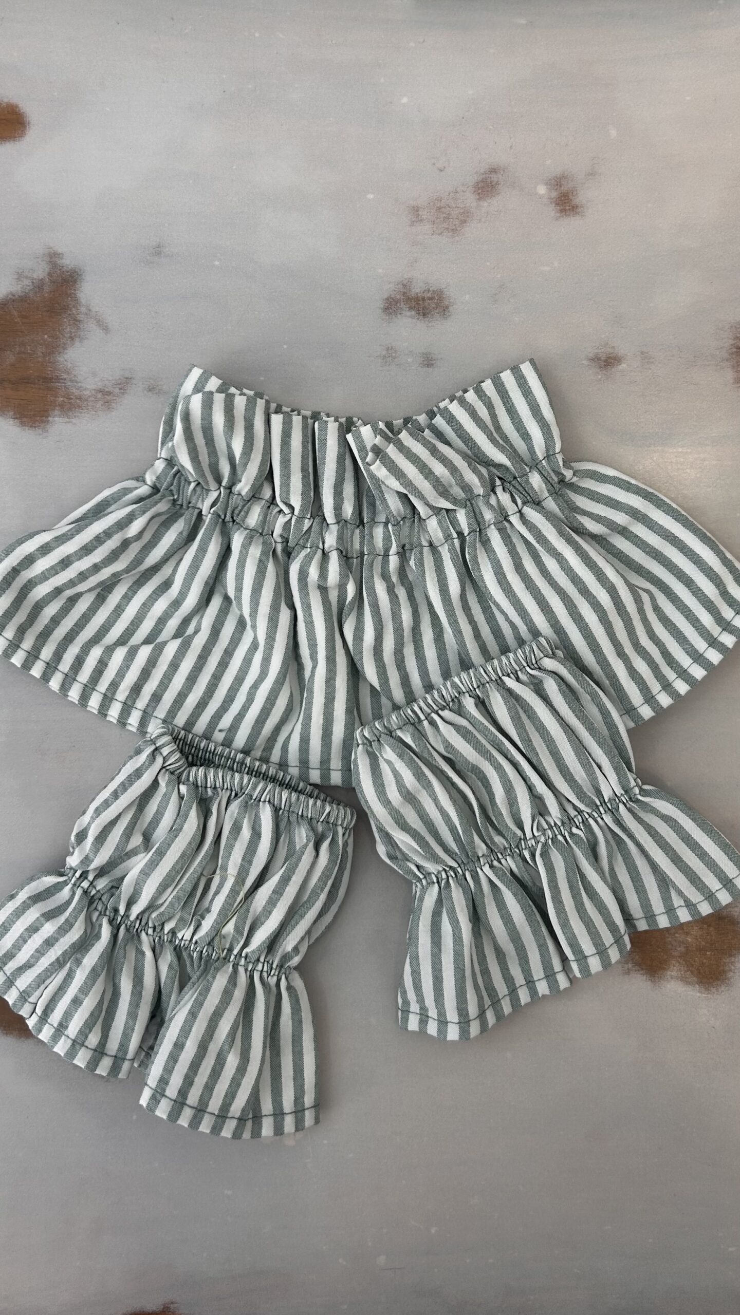 Conjunto de cuello y puños en rayas. Goma elástica ajustable.Talla única. Disponible también en Rosa Azul y Beige
