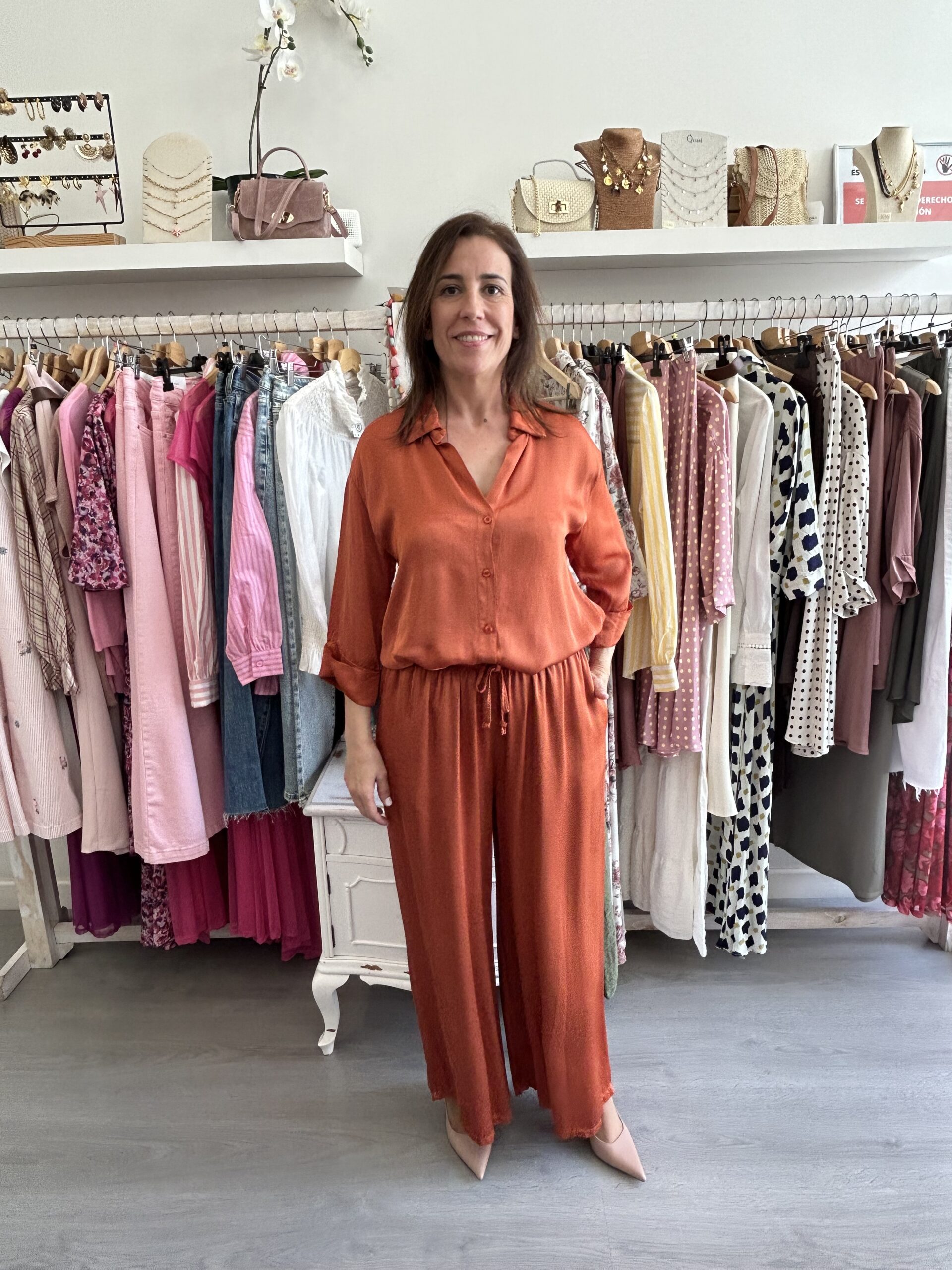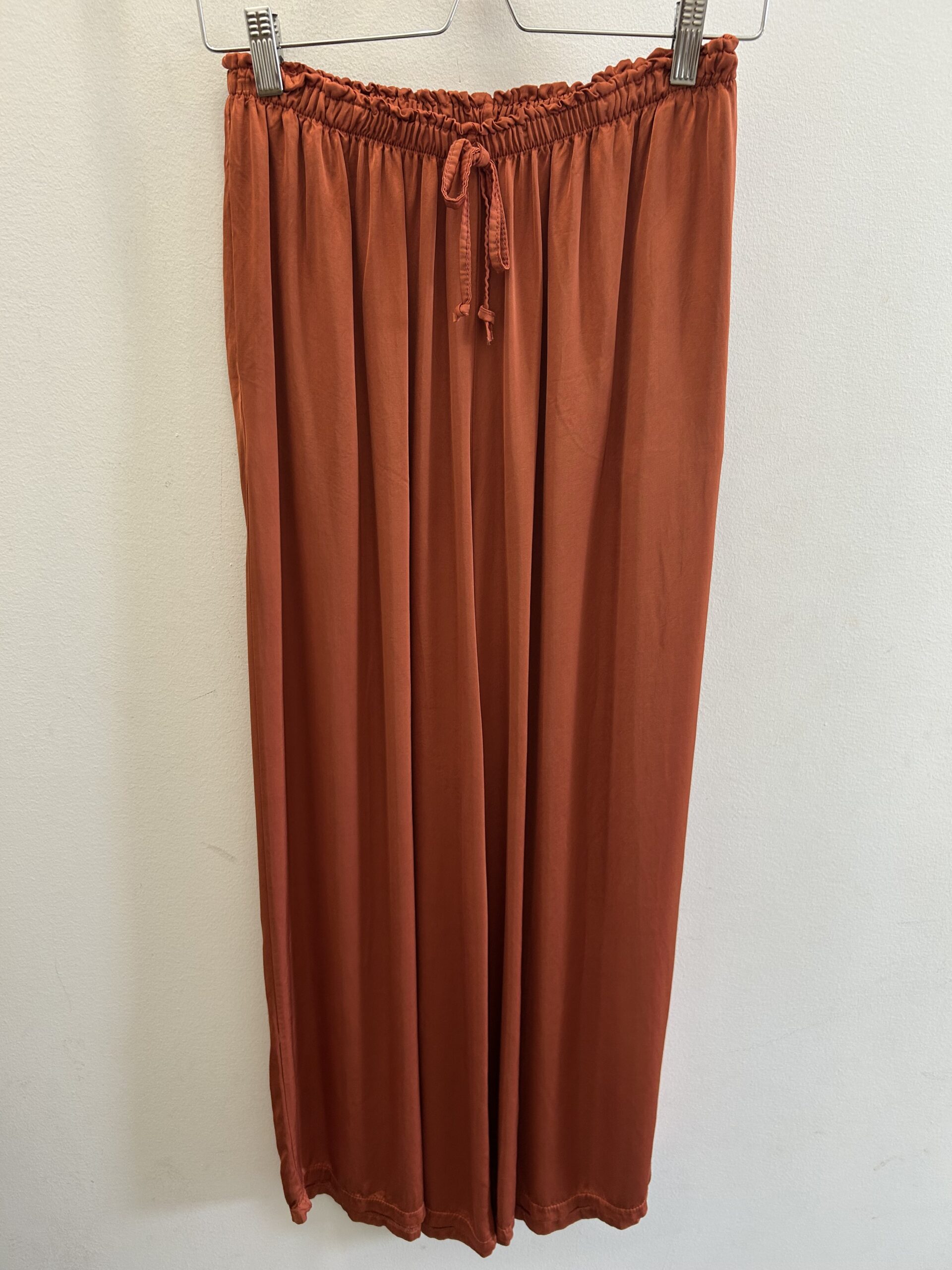 Pantalón largo de pata ancha. Goma elástica en la cintura. Bolsillos en los lados. Talla única (desde la 36 hasta la 42). Disponible también en amarillo