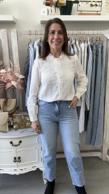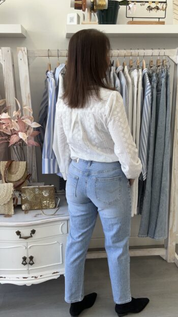 Vaquero Momfit Blanco Roto