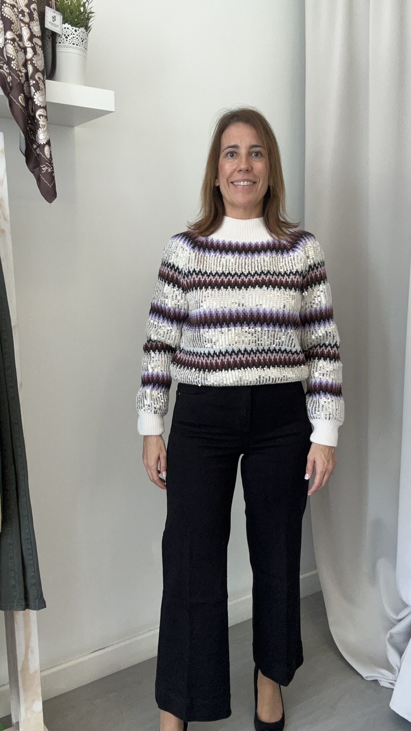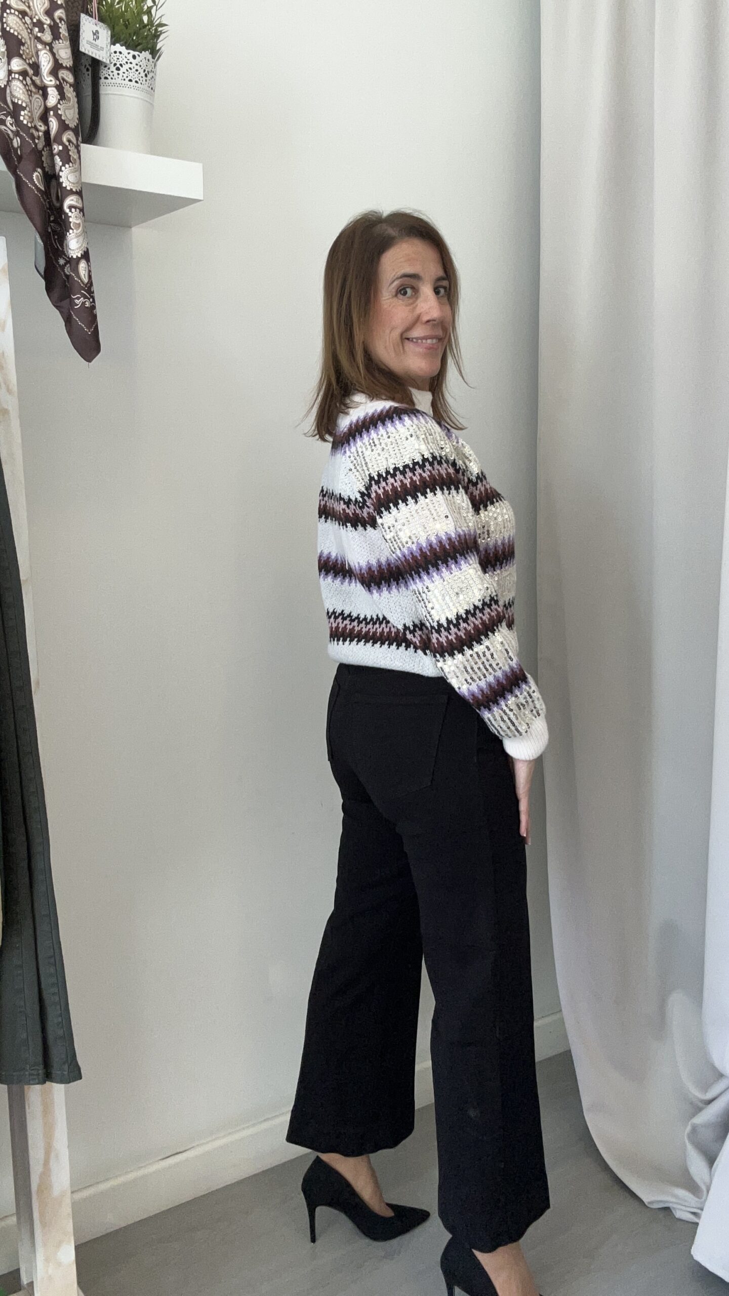 Pantalón vaquero con cinco bolsillos de pata ancha. Tiro alto y largo hasta el tobillo. Disponible también en Caqui Granate y Crudo